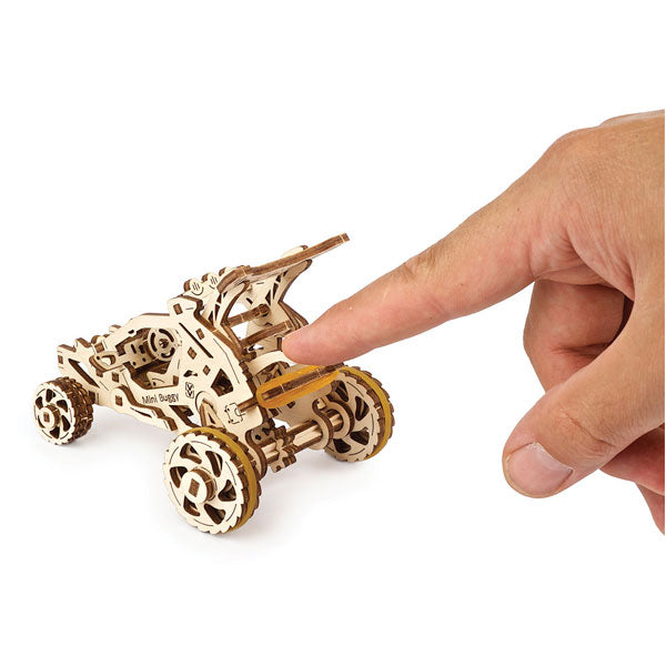 Welcome to the expanding fleet of vehicles in the amazing collection of Ugears wooden mechanical models. We would like you to meet our new little pet: the fast and fun Mini Buggy. This miniature dune buggy is ready to take you on a ride.
